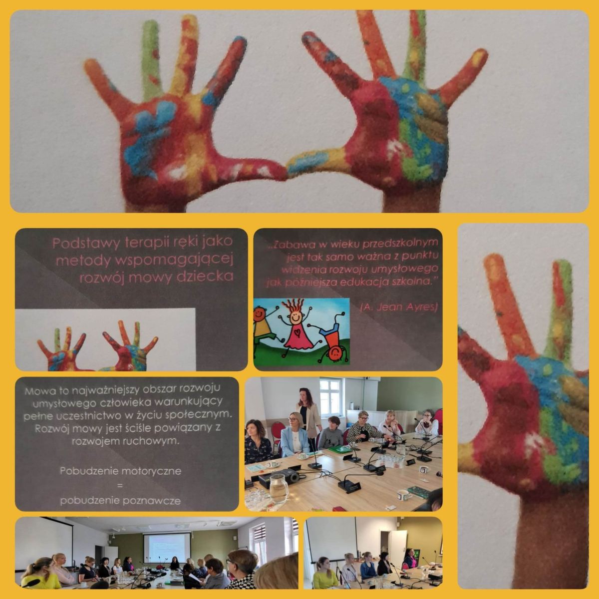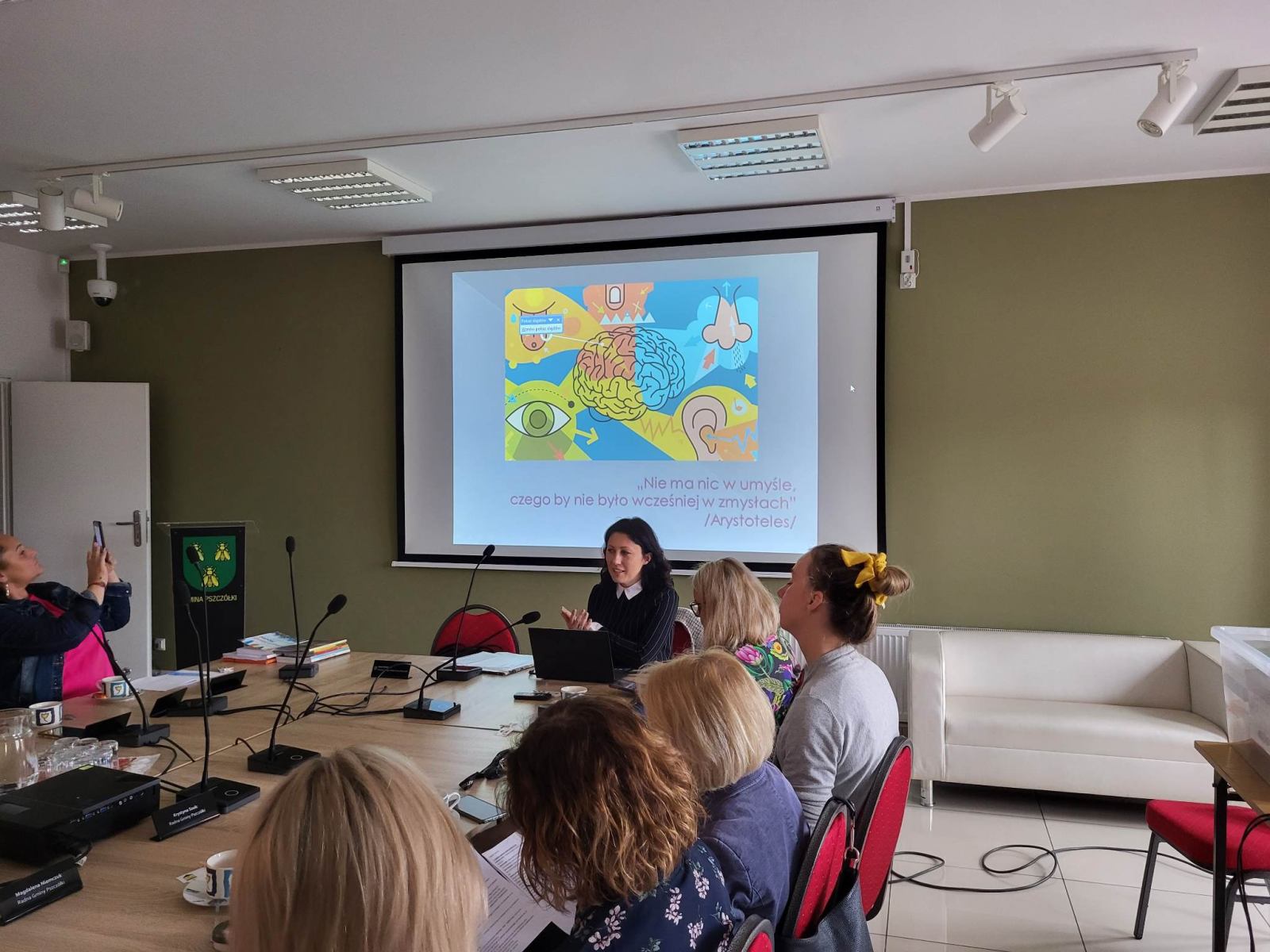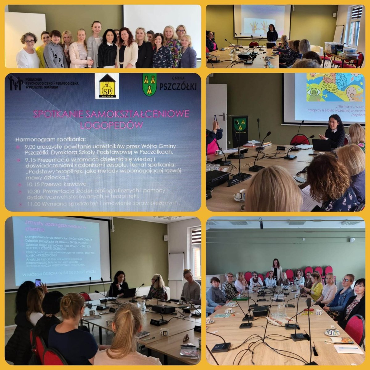 Dnia 17.05.2023 r. odbyło się kolejne samokształceniowe spotkanie logopedów z rejonu działania PPP. Dzięki uprzejmości pani dyrektor Szkoły Podstawowej w Pszczółkach Patrycji Lindy-Górki, wójta Gminy Pszczółki Macieja Urbanka oraz zastępcy wójta Piotra Chajewskiego spotkanie odbyło się w sali Kamienica Kultury, ul. Pomorska 20, 83- 032 Pszczółki. Tematem wystąpienia była prezentacja przygotowana przez Joannę Postrach, logopedę z SP w Pszczółkach p. .t: Podstawy terapii ręki jako metody wspomagającej rozwój mowy dziecka. Omówiono zagadnienia teorii dot. terapii ręki- czym jest, jakie są jej cele, dla kogo jest przeznaczona, jak wygląda diagnoza sprawności motorycznych i plan pracy. Poruszono wiele ważnych w pracy z dzieckiem zagadnień, m.in. czym jest stabilizacja centralna oraz rozwój chwytu narzędzia pisarskiego. Podczas prezentacji pani Postrach opowiedziała o wprowadzanych przez siebie innowacjach, kryteriach, według których kwalifikowała dzieci na zajęcia, przedstawiła problemy wynikające z diagnozy i to, jak wygląda schemat jednostki terapeutycznej. Można było również obejrzeć pomoce i zapoznać się z literaturą przedmiotu.