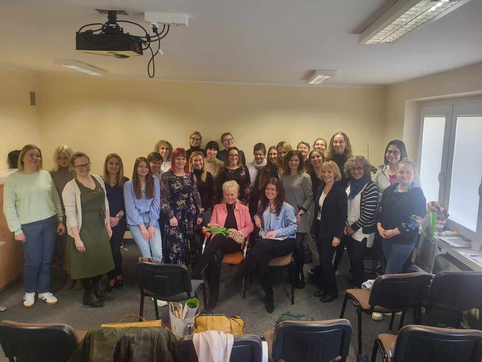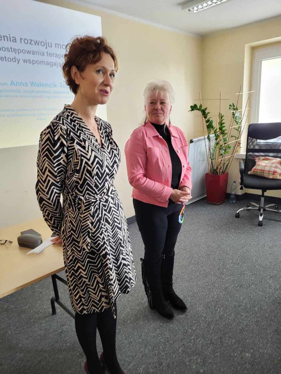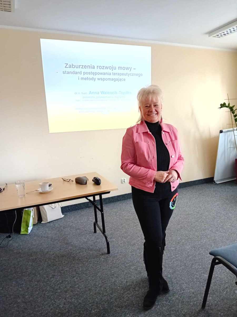 15.03.2024 r w ramach samokształceniowych spotkań logopedów miałyśmy okazję gościć w naszej placówce dr Annę Walencik- Topiłko, pracownika naukowego Instytutu Logopedii Uniwersytetu Gdańskiego. Szkolenie dotyczyło szeroko pojętych zaburzeń komunikacji językowej rozpatrywanych w zakresie standardów postępowania terapeutycznego wraz z metodami wspomagającymi pracę logopedów z pacjentami w różnym wieku. Miałyśmy okazję zastanowić się co jest klasyczne w logopedii, co powinno być standardem naszej pracy, a co innego powinno być bazą do dalszych poszukiwań. Pani dr Anna Walencik- Topiłko przypominała nam, jakie powinny być wytyczne w doborze metod związanych z mową, słuchem, motoryką i innych wspomagających pracę z pacjentem, przekazała nam także cenne wskazówki jak nakłonić pacjenta i jego otoczenie, żeby z nami współpracował. Na koniec Pani doktor wyraziła uznanie dla naszej prężnie działającej grupy profesjonalistek z różnych środowisk i roczników, w których widzi ciągły zapał do pracy podkreślając także, że te spotkania są dla nas samych najlepszą formą superwizji. Serdecznie dziękujemy za szkolenie!